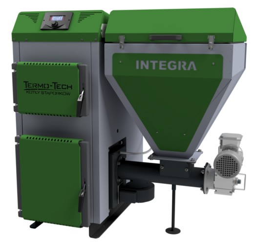 Stalowe kotły typu INTEGRA z nowym palnikiem retortowym, wykonanym z wysokiej jakości żeliwa szarego, przeznaczone są do wodnych instalacji centralnego ogrzewania w układach systemu otwartego jak również zamkniętego. Kotły stanowią konstrukcję stalową spawaną z atestowanych blach kotłowych o grubości 6 mm, gwarantujących długotrwałe użytkowanie. Przeznaczone są do spalania ekogroszku o granulacji 5-25 mm.