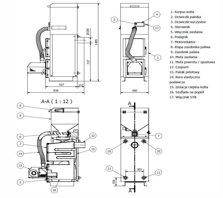 KOCIOŁ PELL DUO 10 kW TERMO-TECH (Zbiornik Górny)