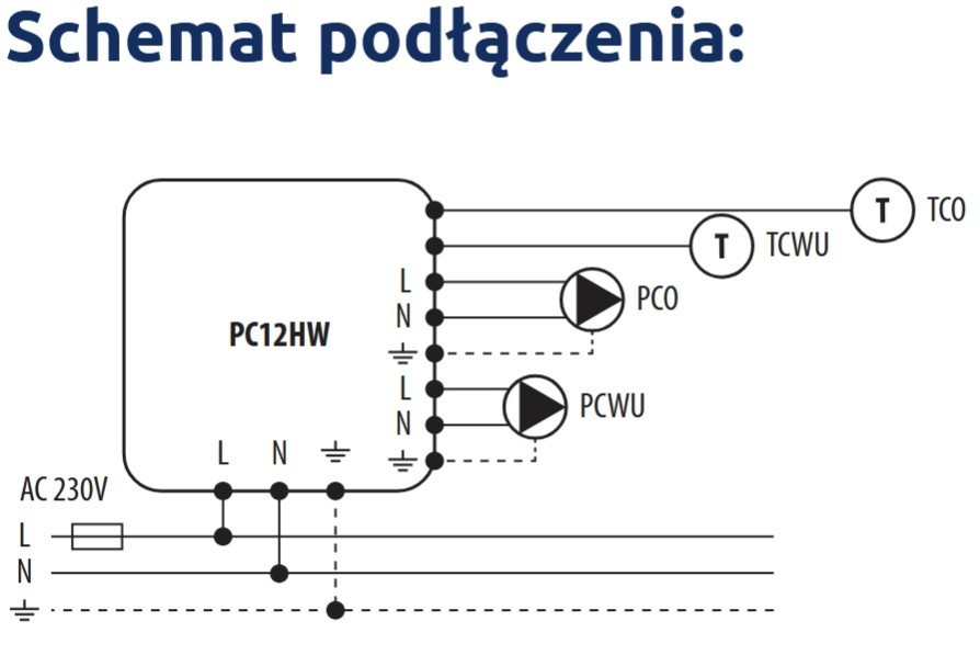 Sterownik włącza się, gdy temperatura kotła przekroczy nastawioną przez użytkownika temperaturę załączenia pompy CO. Pompa CWU działa na zasadzie różnicy temperatur. Włączanie pompy CWU następuje w momencie, gdy temperatura kotła przekroczy temperaturę zasobnika o ustawioną przez użytkownika histerezę. Pompa CWU pracuje do momentu, gdy temperatury kotła i zasobnika wyrównają się lub ustawiona temperatura zasobnika zostanie osiągnięta.