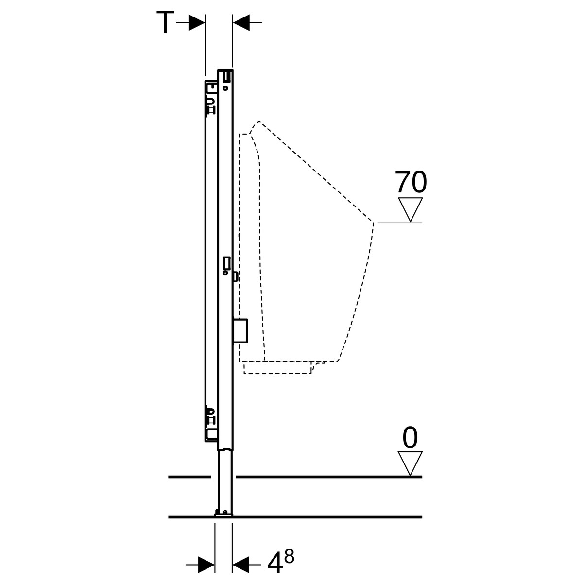Przedmiotem sprzedaży jest stelaz Geberit DUOFIX, elementmontażowy do pisuaru uniwersalny dla natynkowego zaworu spłukującego H112.